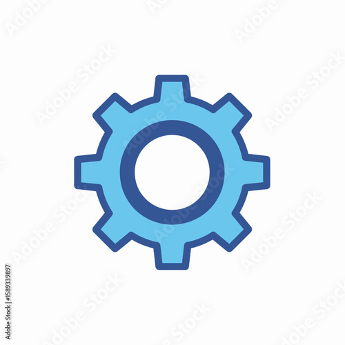 A blue gear icon with a thick outline on a white background, symbolizing settings or mechanics.