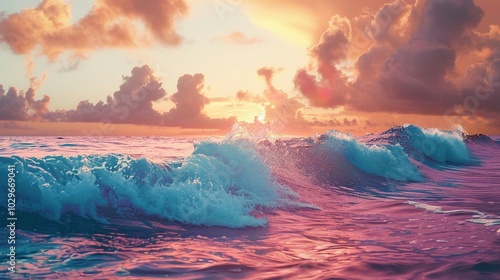 A Blue Wave Crashing Against a Pink Sunset Sky