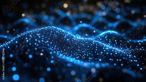 A blue-toned network illustration, depicting connections and data flow in a digital and technological environment.