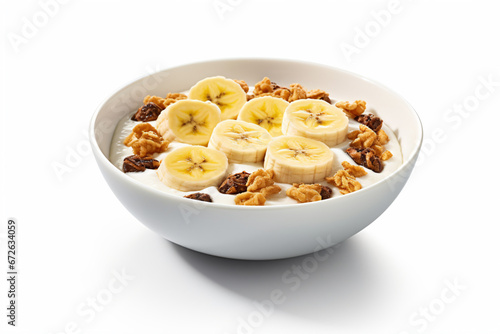 a bowl of cereal with bananas and raisins