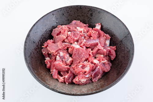 A bowl of fresh beef brisket slices