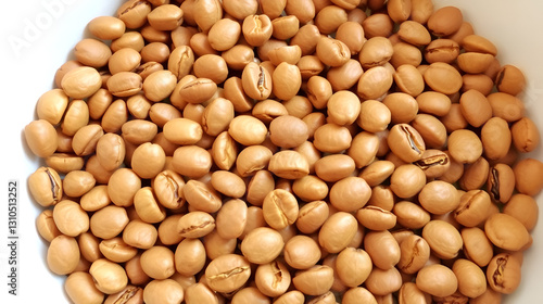 A bowl of unroasted light brown coffee beans, ready for roasting and brewing.