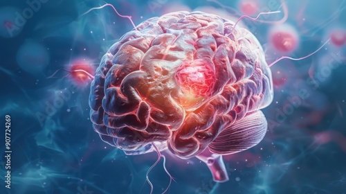 A brain with a red spot on it