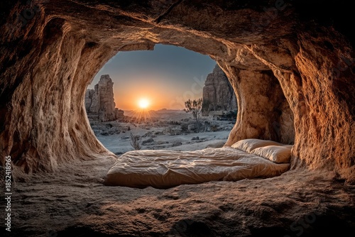 A breathtaking sunrise view of the empty tomb of Jesus