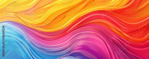 A bright and energetic rainbow gradient wave background with bold, flowing lines and a seamless