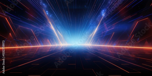 A bright blue and red background with a white light shining through it background.