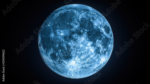 A bright blue full moon against a dark black background, ideal for use in astrology, astronomy or lunar-themed designs