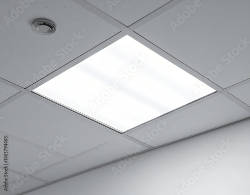 A bright ceiling light fixture illuminates a plain, white ceiling, creating a clean and modern atmosphere in a commercial space
