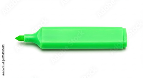 A bright green highlighter pen isolated on a white background.