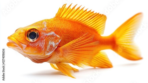 A bright orange anthias fish, soft lighting, isolated on a white background