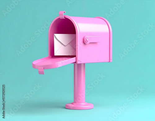 A bright pink mailbox with an open door revealing a white envelope, Ideal for communication, email, delivery and notification themes with a modern and cheerful aesthetic.