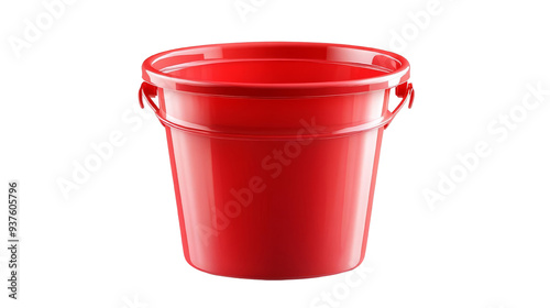 A bright red plastic bucket, perfect for various uses such as cleaning, gardening, and storage. Durable and versatile.