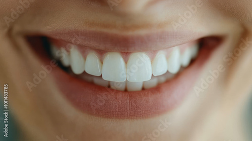 A bright smile showcases perfect teeth in a close-up shot, capturing the joy of a happy moment