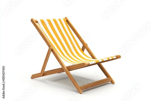 A bright yellow-striped deck chair designed for relaxing by the beach during summer vacations