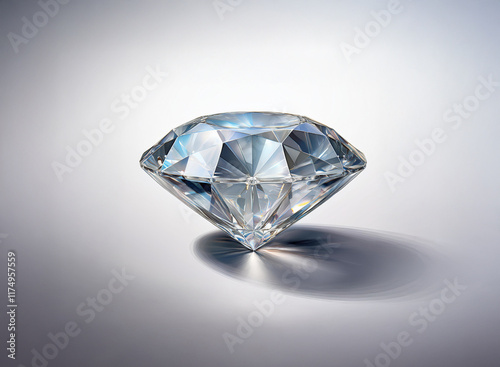 A brilliant, round-cut diamond sparkles, its facets catching the light, casting a subtle shadow on a neutral background. The gem's clarity and intricate cut are emphasized.