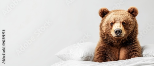 A brown bear sitting on top of a bed