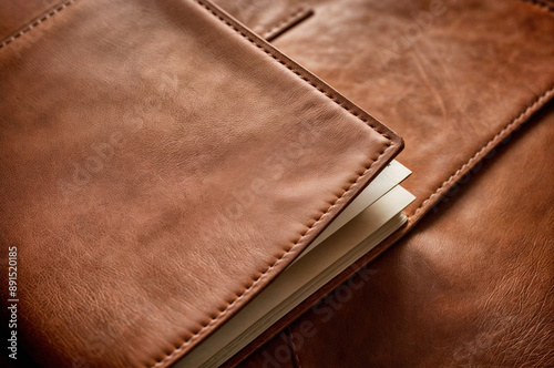A Brown Leather Book. The Book Is Open and Slightly Tilted to the Left.