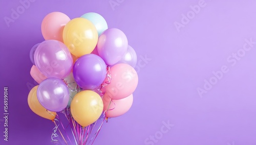 a bunch of balloons on a purple background. a bunch of balloons on a purple background. a large assortment of colorful kites in a clear blue sky