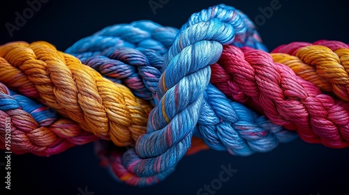 a bunch of colorful ropes are tied together on a black background