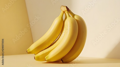 A bunch of ripe yellow bananas on a pale background