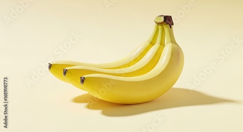 A bunch of ripe yellow bananas placed neatly on a light pastel background