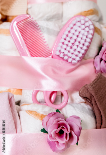 A Cake Decorated With Things For A Baby Girl