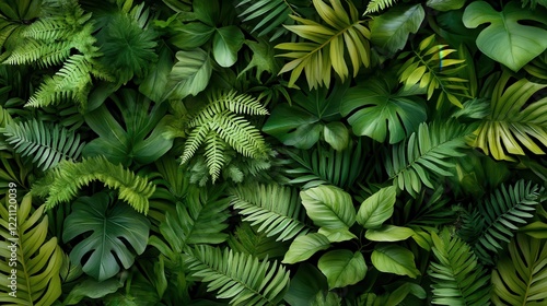 A captivating array of tropical foliage symbolizes serenity and balance, inviting viewers to immerse themselves in nature's tranquil patterns.