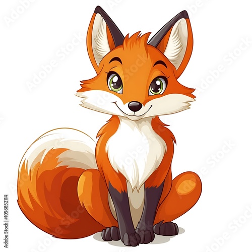 A cartoon fox sitting with its tail curled on a white background.