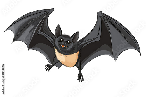 A cartoon-style illustration of a bat with outstretched wings, showcasing its features.