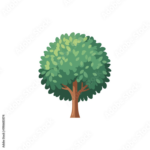 A cartoon-style tree with a brown trunk