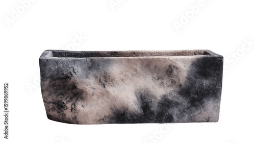 A charcoal stone letter holder highlighting soft pastel tones, white background --ar 16:9