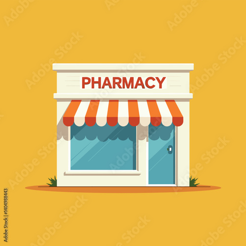 A charming corner pharmacy with its red and white awning, invites customers for health essentials.