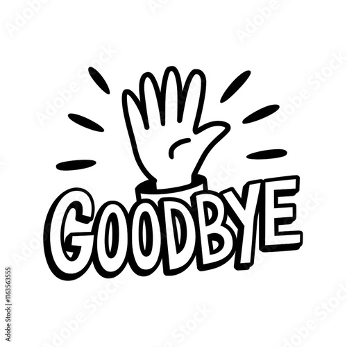 A cheerful illustration of a hand waving goodbye text symbolizing farewell and new beginnings. transparent background