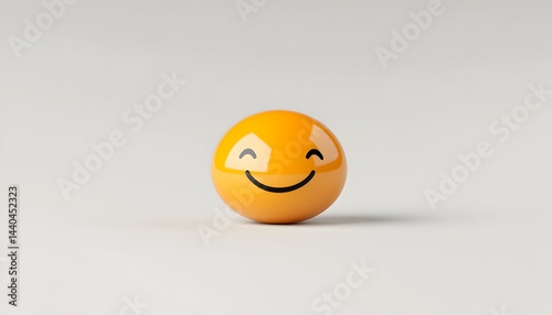 A cheerful, orange sphere with a simple smiling face, rendered against a minimalist white backdrop