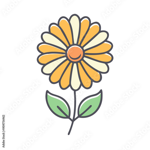 A cheerful yellow daisy flower with green leaves a simple illustration of springtime nature