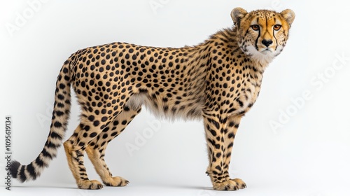 a cheetah standing on a white background