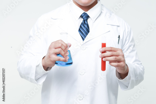 A chemist holding a flask