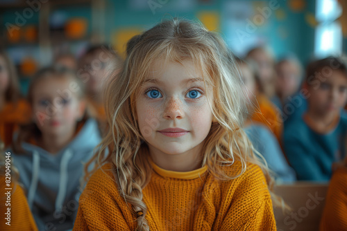 A child presenting a school project to their classmates. Concept of education and confidence. Generative Ai.