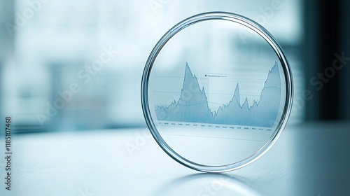 A circular glass frame displays a line graph, suggesting analysis or data visualization in a professional setting.