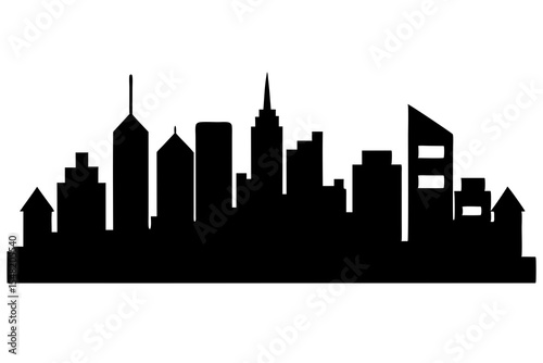 A city skyline silhouette is isolated on white background