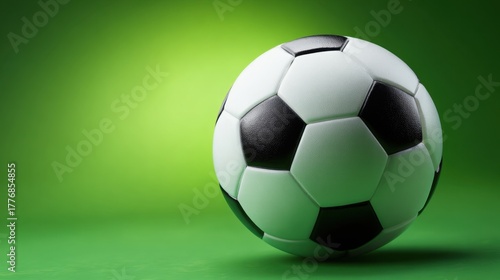 A classic black and white soccer ball sits on a lively green background inviting action and excitement.