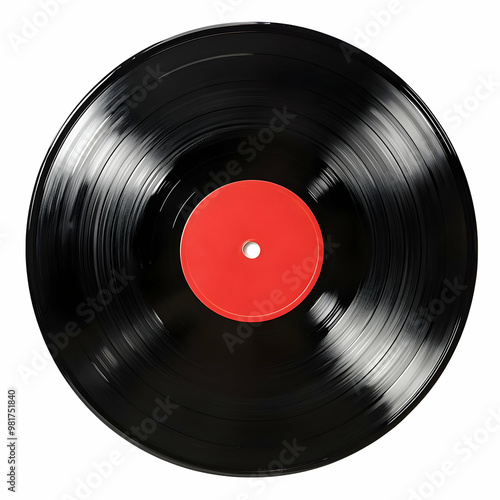 A classic black vinyl record with a vibrant red center, perfect for music lovers and retro-themed designs.
