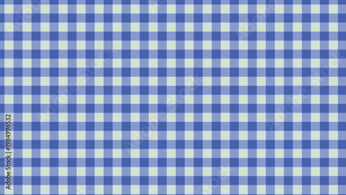 A classic bright blue and light green gingham checkered pattern provides a charming seamless fabric texture
