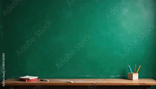 A classic green chalkboard with chalk dust, ready for learning , graphic, weathered, educational