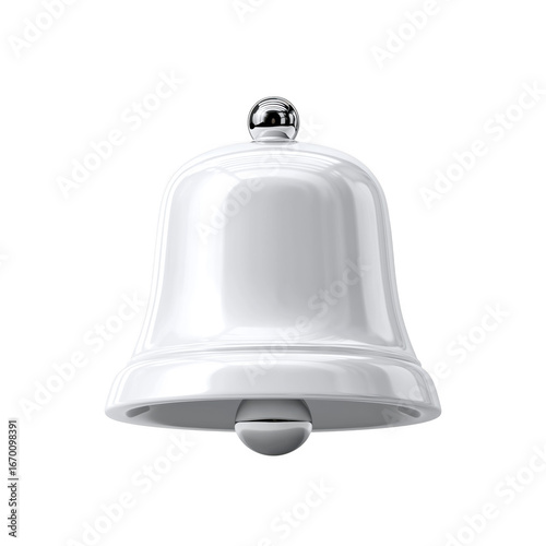A classic white ceramic bell with a silver finial isolated on a transparent background isolated on transparent background