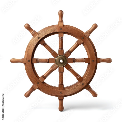 A classic wooden ships wheel, isolated on white background