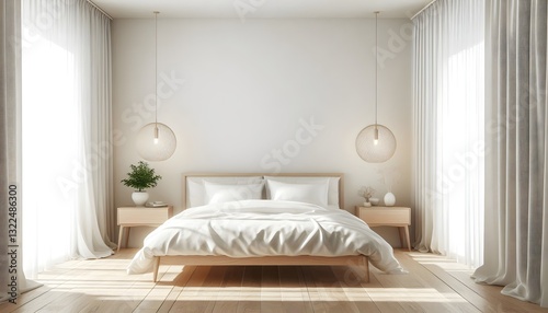 A clean and inviting bedroom features a large bed adorned with soft blankets and pillows