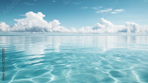 A clear, bright sky blue background with soft white clouds floating gently across the surface