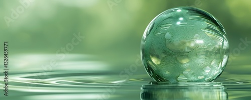 A clear glass ball is floating on the water