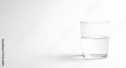 A clear glass filled with water sits on a white surface in a minimalist composition style image ai generated